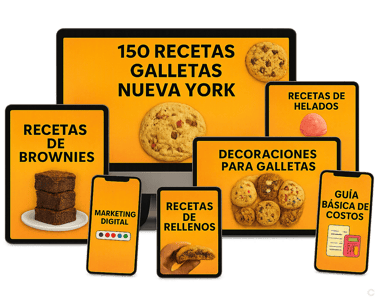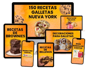 ✅ Impulsarás tus ingresos con más de 150 recetas irresistibles de Galletas al Estilo Nueva York.